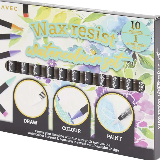 - Bevat 10 Aquarelkrijtjes, 1 Aquarelkwast En 1 Wax Resist Stick