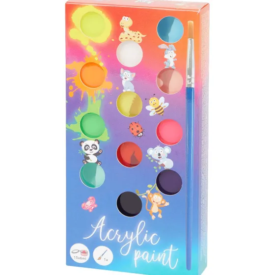 - 15 Verschillende Kleuren Acrylverf Inclusief 1 Penseel