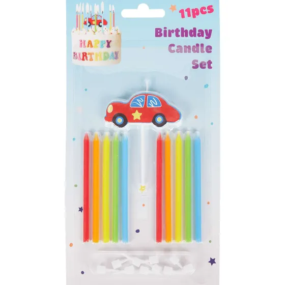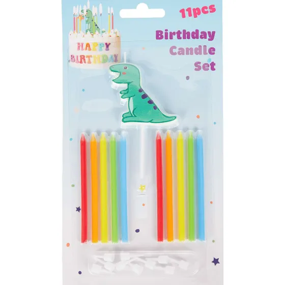 - 11 Kaarsjes In Verschillende Vrolijke Kleuren Waarvan 1 Groter Kaarsje